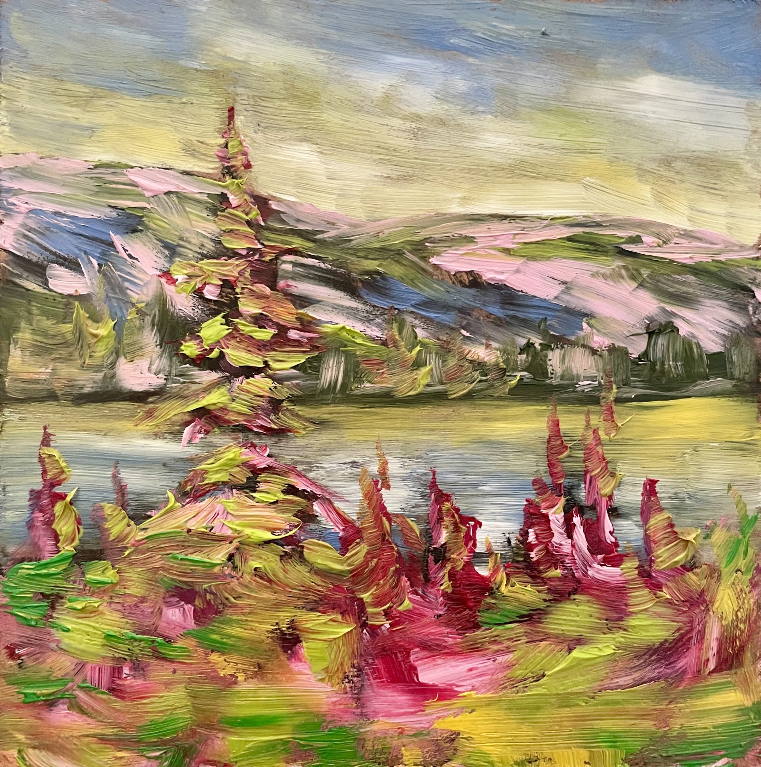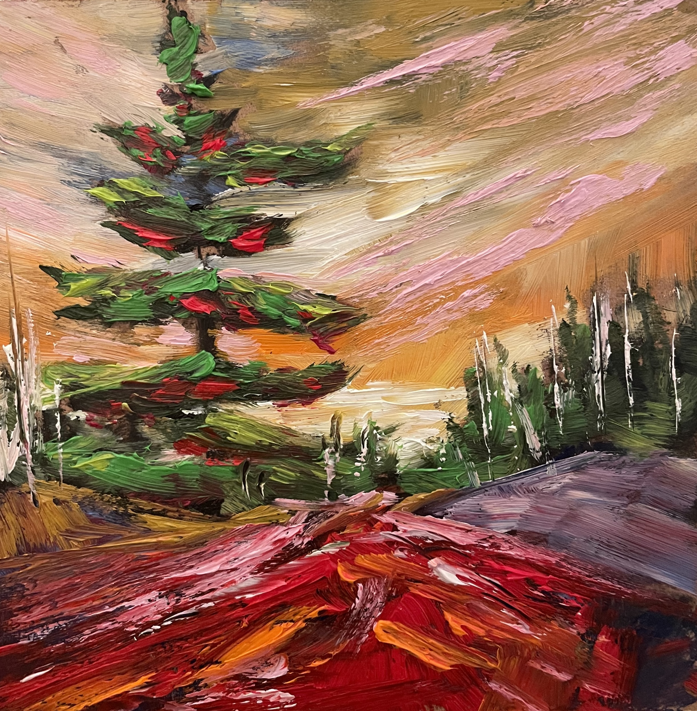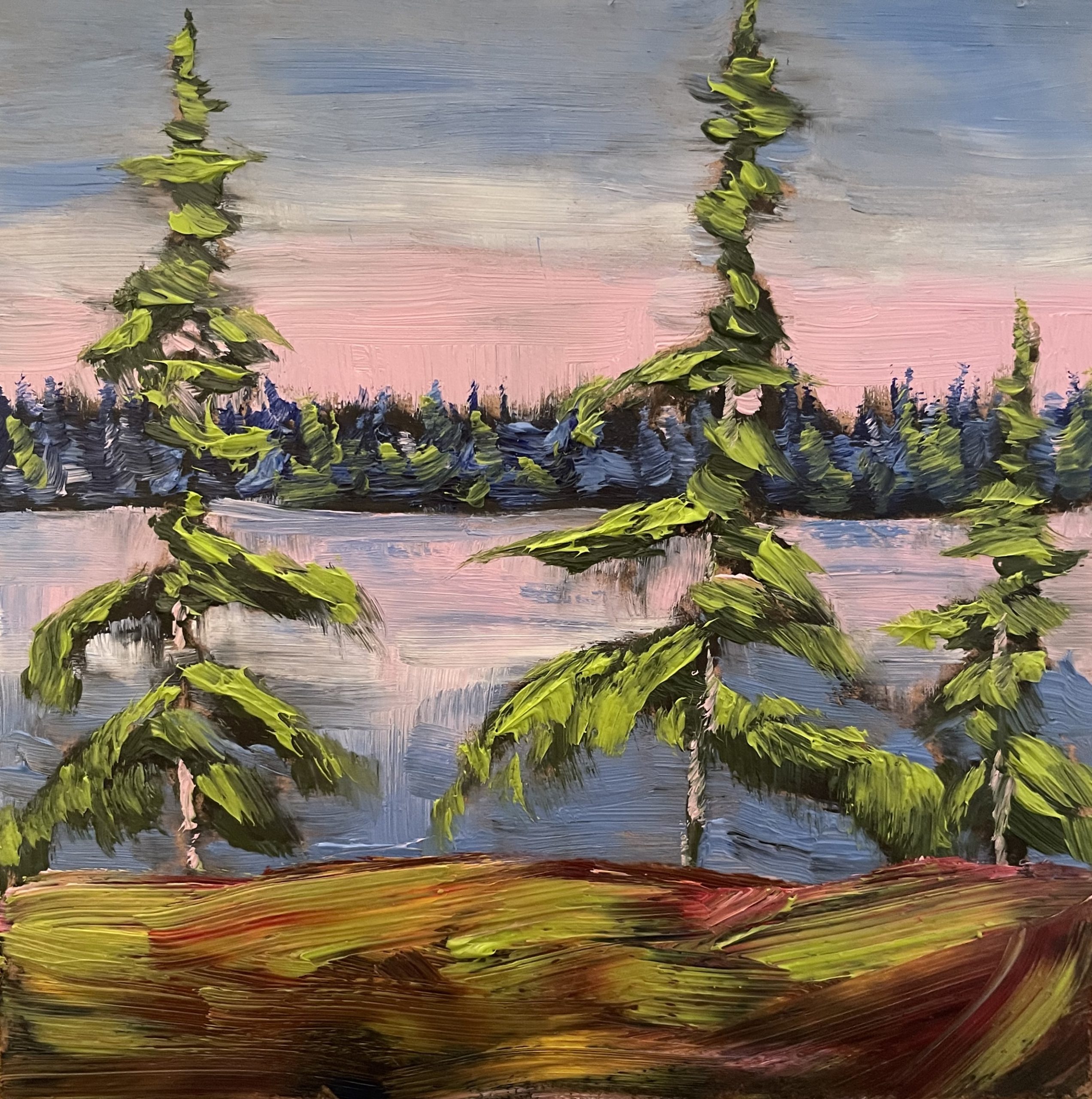 He uses all types of media for his paintings with a style that continues to evolve – but his love of art and the environment he’s in, are always the base. Using spray paint, knives, digital canvasses and other tools he is creating works both small and large that provide a different and unique take on our environment, while still in the spirit of the Tom Thomson and the Canadian school.